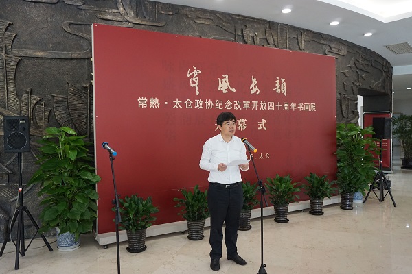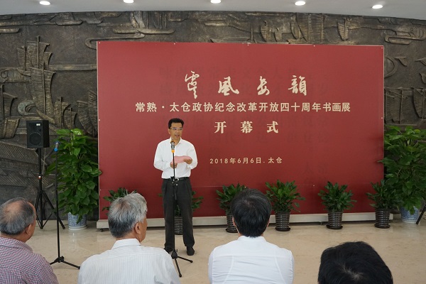 邱震德主席在致辞中说,同处江南福地的常熟和太仓,自古以来就是书画艺术家生活和创作的理想之地,文化艺术领域流派纷呈、名人辈出。改革开放以来,两地政协文化艺术界委员引领时代、贴近生活、勤耕不辍,创作了大量优秀书画作品,为传承和弘扬地域文化、扩大城市影响、凝聚发展合力作出了积极贡献。他表示,希望此次书画展能为增强民族文化自信、促进两地文化繁荣作出新的更大贡献。